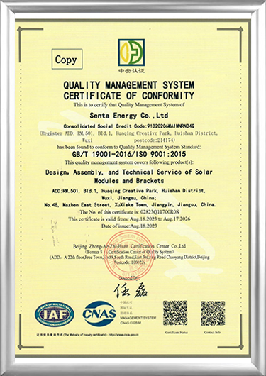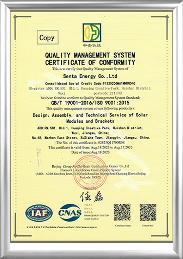 Được thành lập vào năm 2016, Công ty TNHH Senta Energy, đặt tại Vô Tích, Giang Tô, là một doanh nghiệp công nghệ cao chủ yếu hoạt động trong lĩnh vực phát điện quang điện năng lượng mới và kinh doanh lưu trữ năng lượng, nhà lắp ghép xây dựng mới và kinh doanh trồng trọt phân tán nông nghiệp mới. Nhà sản xuất linh kiện năng lượng mặt trời và Nhà cung cấp linh kiện năng lượng mặt trờiTích hợp nghiên cứu và phát triển độc lập, sản xuất, bán hàng và dịch vụ, chúng tôi cam kết cung cấp cho người dùng toàn cầu các giải pháp tổng thể cho toàn bộ vòng đời năng lượng thông minh, tòa nhà thông minh và trồng trọt thông minh.